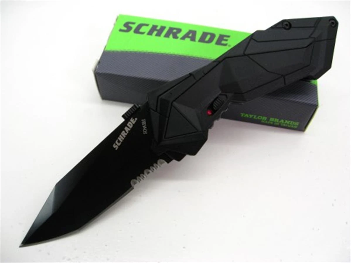 Couteau Automatique Tactical Schrade Military Lame Tanto Acier 4034 Serrat Manche Alu SCHA3BS – Free Shipping