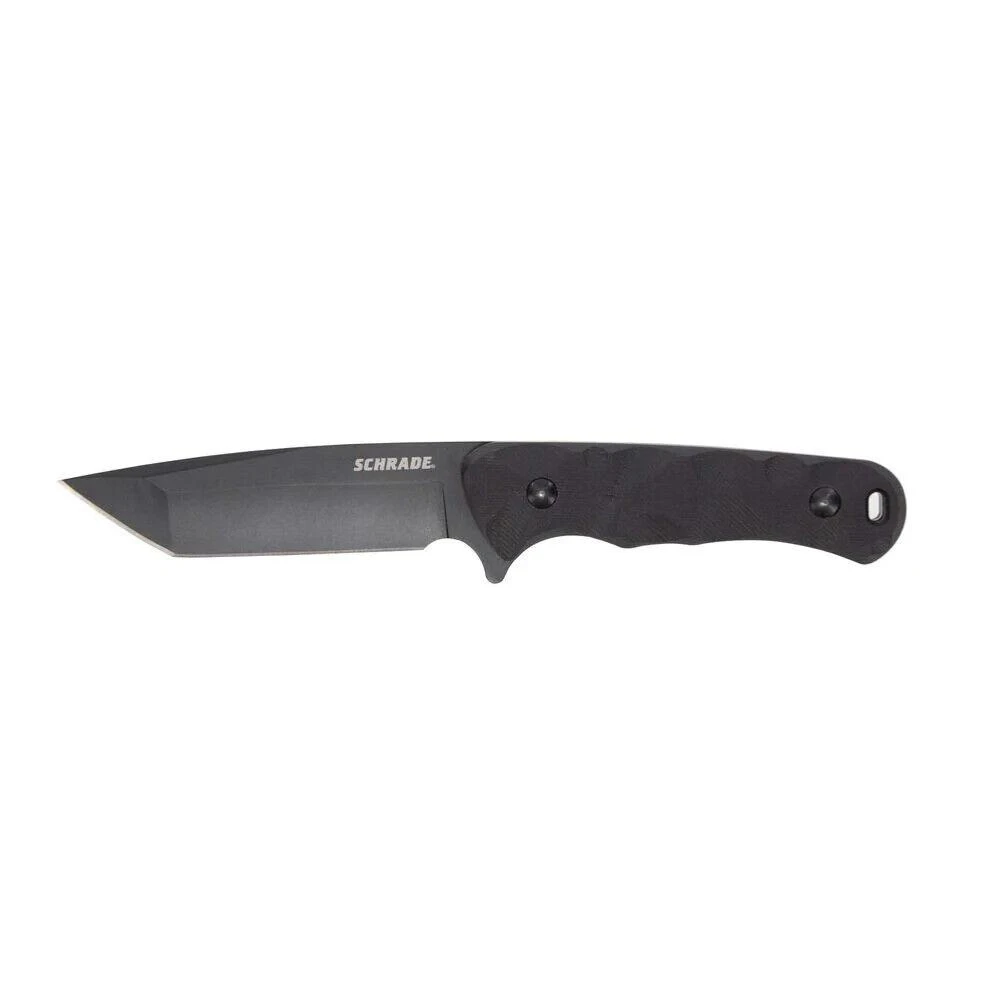 Descriptif : Le couteau tactical Schrade Regime est doté d’une lame tanto en acier AUS-8 58-59HRC avec une finition noire. De conception plate semelle ce Schrade possède des plaquettes en G10 avec un trou à l’extrémité. L’étui polymère permet le port à la ceinture.