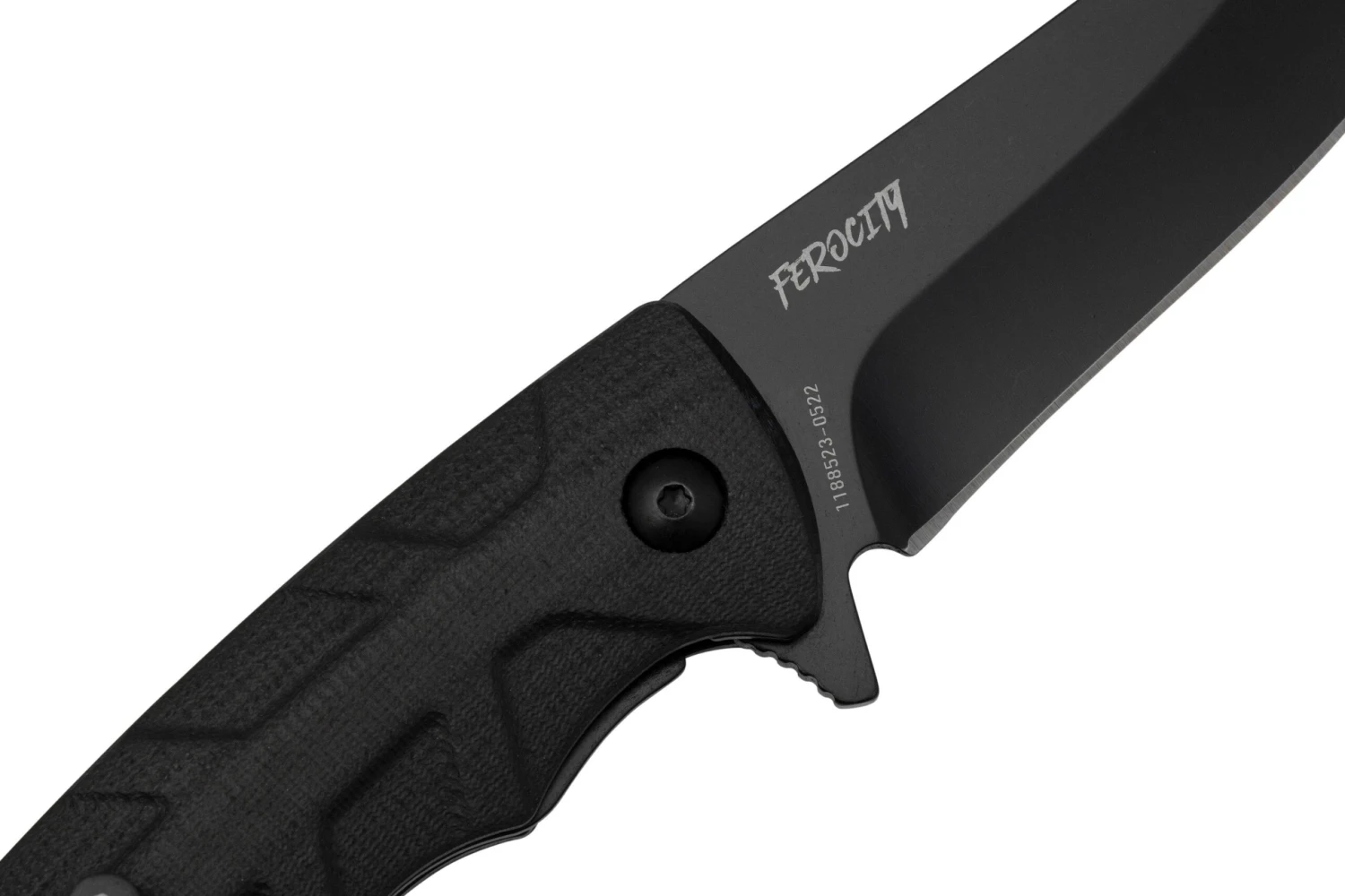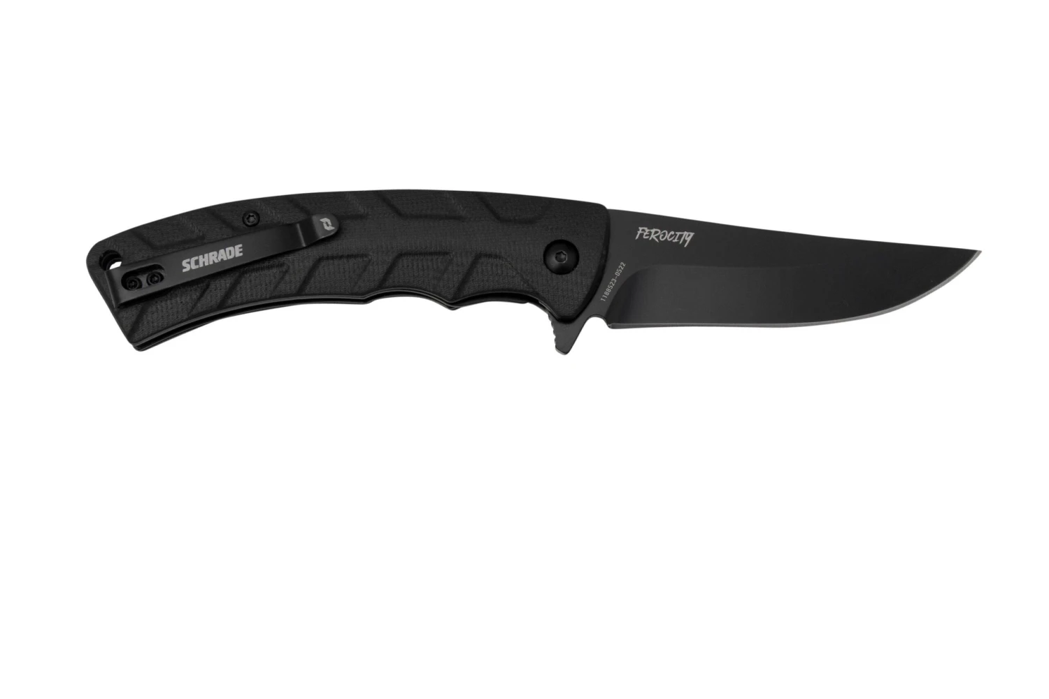 Le Schrade Ferocity est un superbe couteau de poche au rapport qualité-prix excellent. On ouvre la lame grâce au flipper, le mouvement étant très souple grâce au “Nitro Assisted Opening Mechanism”. Le solide linerlock maintient ensuite la lame bien en place.
